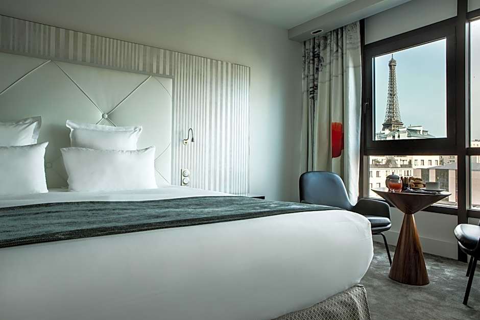 These privilege double rooms have air conditioning and Eiffel Tower View. They provide a flat-screen TV, a Nespresso coffee machine and an electric kettle. The private bathroom comes with free toiletries and a bath or a shower. Bathrobes and slippers are provided.